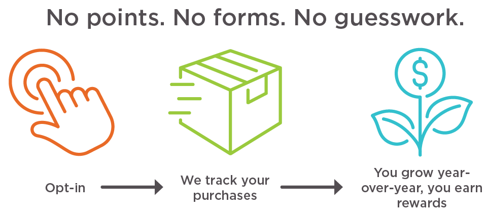 A: You’ll earn credit vouchers you can use on future orders, based on how much your business grows year-over-year.